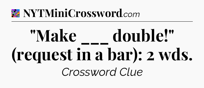 The clue “”Make ___ double!” (request in a bar): 2 wds” most recently appeared in a Crosswords With Friends on May 2, 2025.