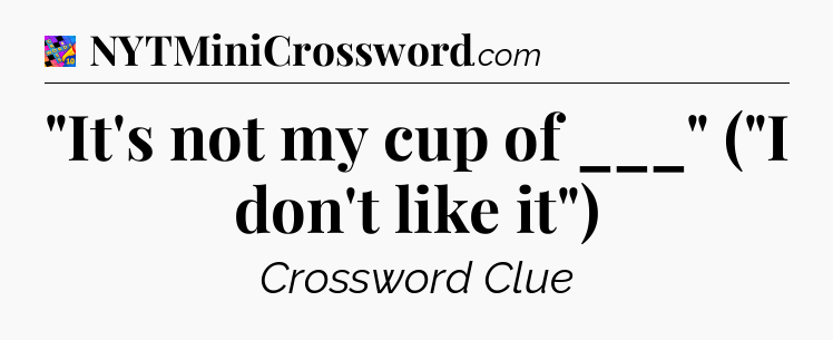 The correct answer to the crossword clue “”It’s not my cup of ___” (“I don’t like it”)” is TEA.