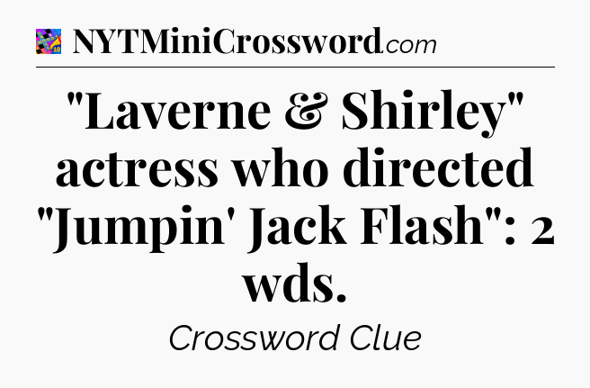 The clue “”Laverne & Shirley” actress who directed “Jumpin’ Jack Flash”: 2 wds” most recently appeared in a Crosswords With Friends on May 29, 2024.