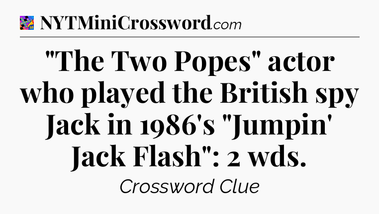 The clue “”The Two Popes” actor who played the British spy Jack in 1986’s “Jumpin’ Jack Flash”: 2 wds” most recently appeared in a Crosswords With Friends on May 29, 2024.