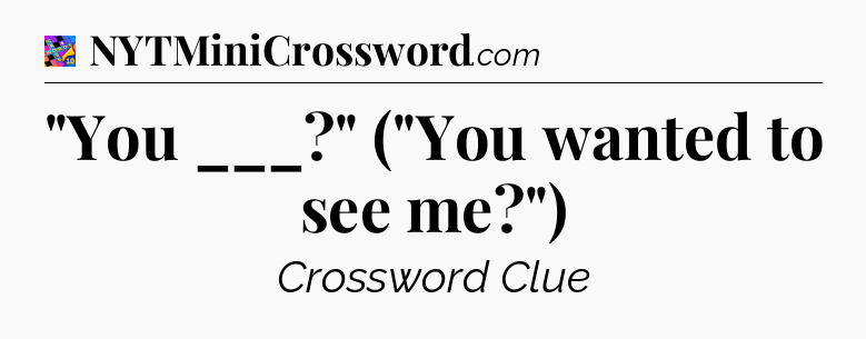 This page will help you find the correct answer to the ‘”You ___?” (“You wanted to see me?”)’ clue from Crosswords With Friends. If you’re stuck, simply scroll down to see the solution. We also provide extra answers, helpful hints, and tips to make solving Crosswords With Friends easier and more enjoyable. Use this resource anytime you need quick assistance with tough clues!
