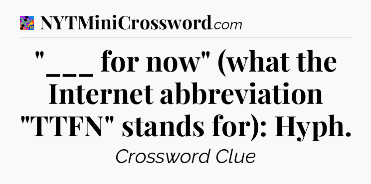 There is 1 possible answer for the crossword clue “”___ for now” (what the Internet abbreviation “TTFN” stands for): Hyph”.