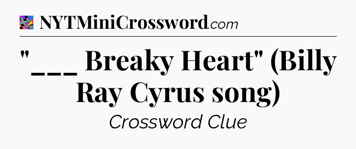 The clue “”___ Breaky Heart” (Billy Ray Cyrus song)” most recently appeared in a Crosswords With Friends on May 31, 2024.