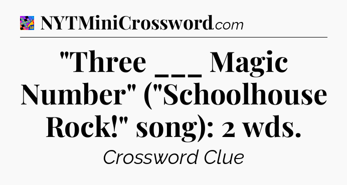 The clue “”Three ___ Magic Number” (“Schoolhouse Rock!” song): 2 wds” most recently appeared in a Crosswords With Friends on May 5, 2025.