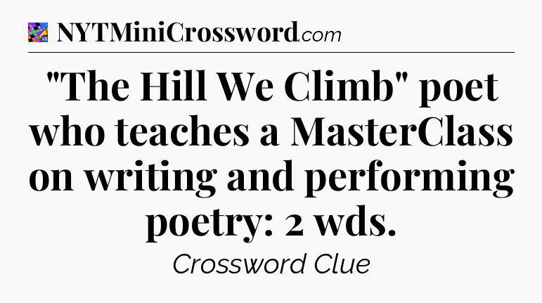 The clue “”The Hill We Climb” poet who teaches a MasterClass on writing and performing poetry: 2 wds” most recently appeared in a Crosswords With Friends on June 1, 2024.