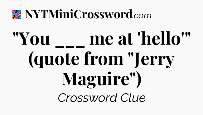 The clue “”You ___ me at ‘hello'” (quote from “Jerry Maguire”)” most recently appeared in a Crosswords With Friends on June 11, 2024.