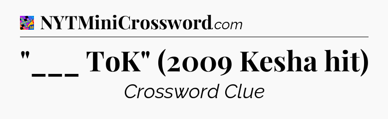 There is 1 possible answer for the crossword clue “”___ ToK” (2009 Kesha hit)”.