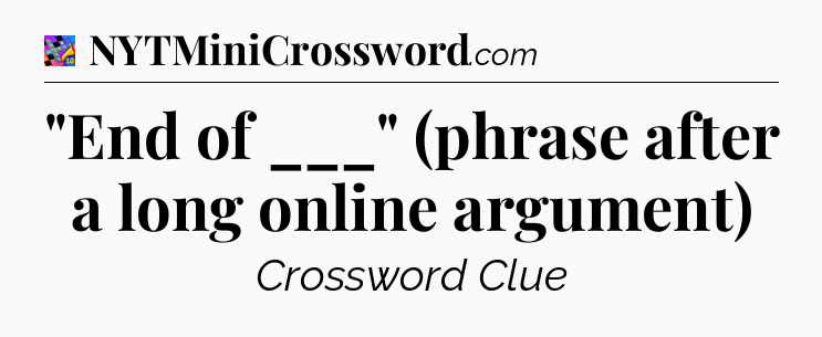 The clue “”End of ___” (phrase after a long online argument)” most recently appeared in a Crosswords With Friends on June 14, 2024.