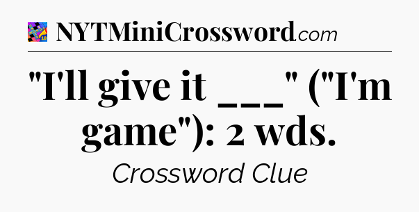 The clue “”I’ll give it ___” (“I’m game”): 2 wds” most recently appeared in a Crosswords With Friends on June 16, 2025.