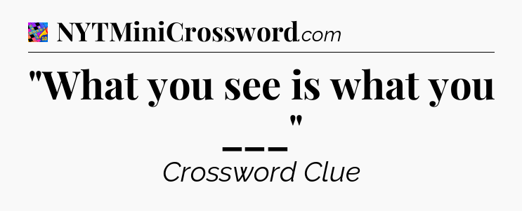 There is 1 possible answer for the crossword clue “”What you see is what you ___””.
