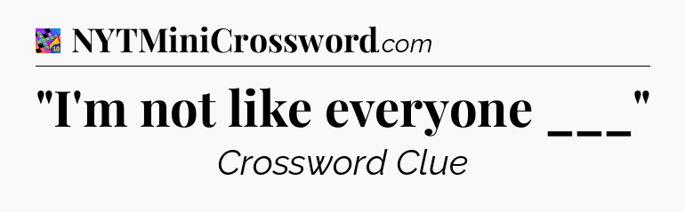 This page will help you find the correct answer to the ‘”I’m not like everyone ___”‘ clue from Crosswords With Friends. If you’re stuck, simply scroll down to see the solution. We also provide extra answers, helpful hints, and tips to make solving Crosswords With Friends easier and more enjoyable. Use this resource anytime you need quick assistance with tough clues!