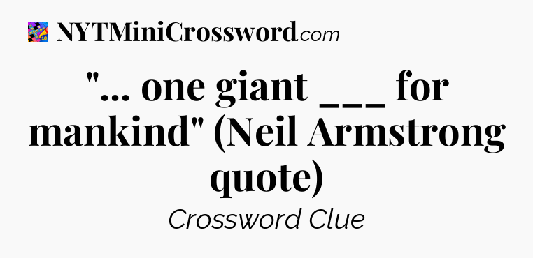 The clue “”… one giant ___ for mankind” (Neil Armstrong quote)” most recently appeared in a Crosswords With Friends on June 2, 2025.