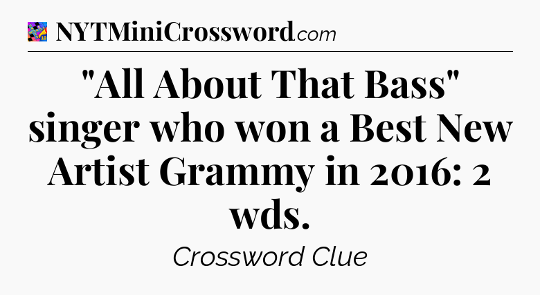 The clue “”All About That Bass” singer who won a Best New Artist Grammy in 2016: 2 wds” most recently appeared in a Crosswords With Friends on June 20, 2024.