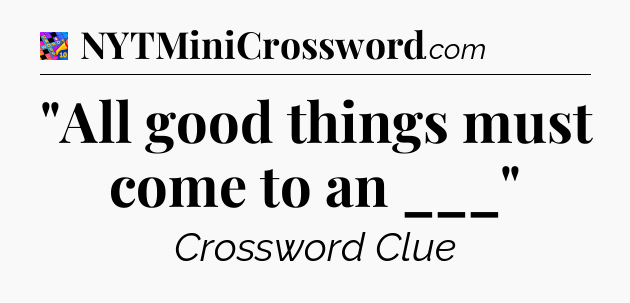 There is 1 possible answer for the crossword clue “”All good things must come to an ___””.