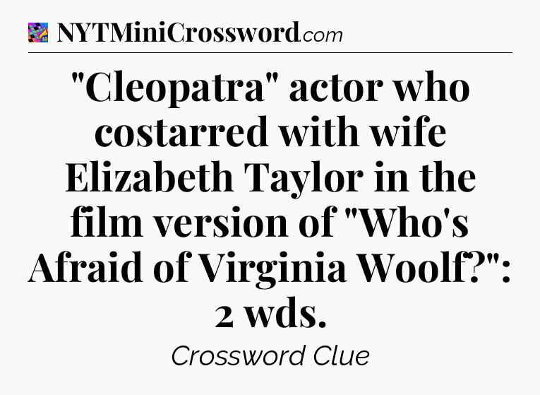 The Answer for “Cleopatra” actor who costarred with wife Elizabeth Taylor in the film version of “Who’s Afraid of Virginia Woolf?”: 2 wds Crossword is:
