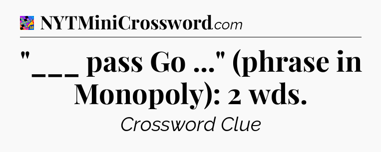 The Answer for “___ pass Go …” (phrase in Monopoly): 2 wds Crossword is: