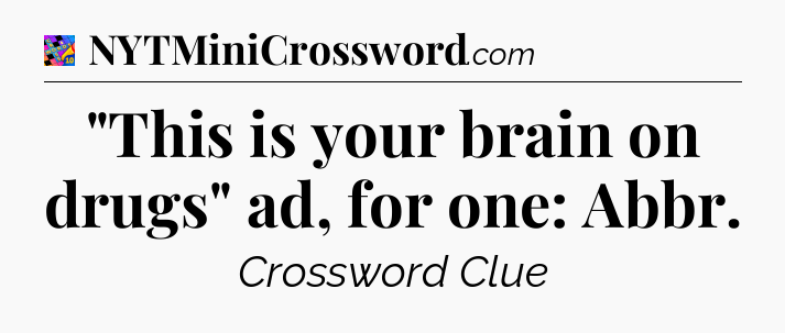 The clue “”This is your brain on drugs” ad, for one: Abbr” most recently appeared in a Crosswords With Friends on June 24, 2024.