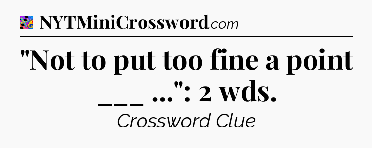 The Answer for “Not to put too fine a point ___ …”: 2 wds Crossword is: