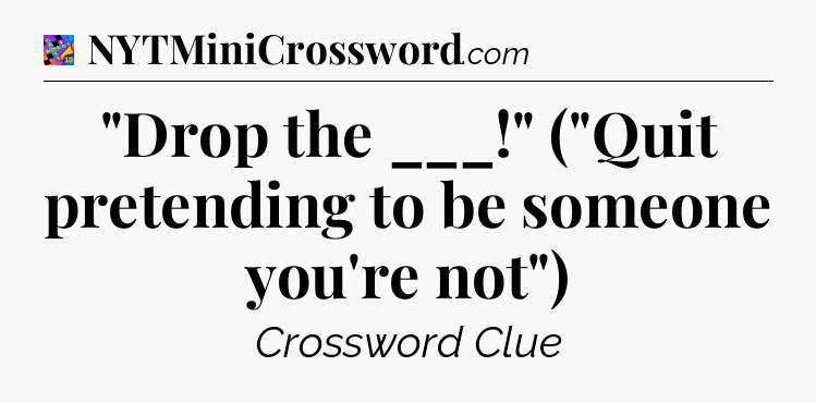 This page will help you find the correct answer to the ‘”Drop the ___!” (“Quit pretending to be someone you’re not”)’ clue from Crosswords With Friends. If you’re stuck, simply scroll down to see the solution. We also provide extra answers, helpful hints, and tips to make solving Crosswords With Friends easier and more enjoyable. Use this resource anytime you need quick assistance with tough clues!