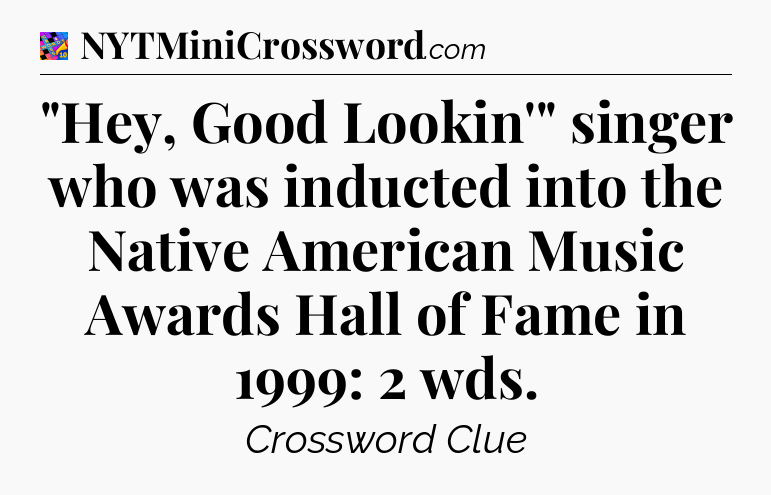 The clue “”Hey, Good Lookin'” singer who was inducted into the Native American Music Awards Hall of Fame in 1999: 2 wds” most recently appeared in a Crosswords With Friends on June 9, 2024.