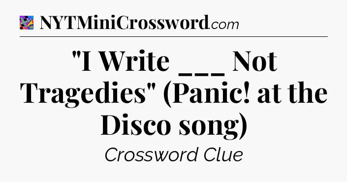 The clue “”I Write ___ Not Tragedies” (Panic! at the Disco song)” most recently appeared in a Crosswords With Friends on July 15, 2025.