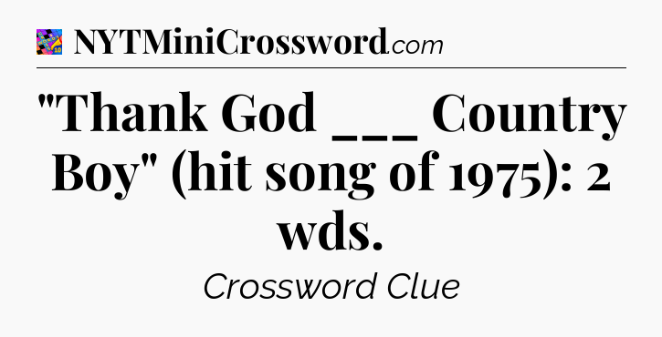 The clue “”Thank God ___ Country Boy” (hit song of 1975): 2 wds” most recently appeared in a Crosswords With Friends on July 17, 2024.
