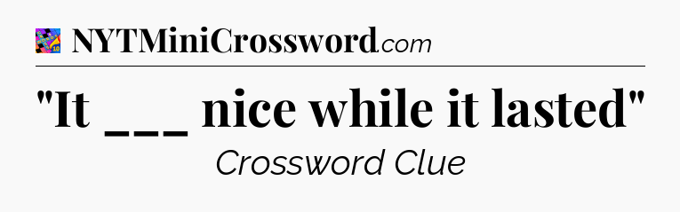 What is the answer to the clue “”It ___ nice while it lasted””?
