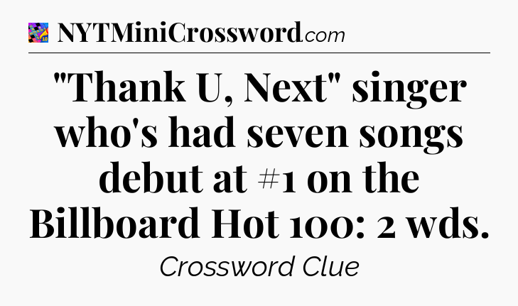The clue “”Thank U, Next” singer who’s had seven songs debut at #1 on the Billboard Hot 100: 2 wds” most recently appeared in a Crosswords With Friends on July 17, 2025.