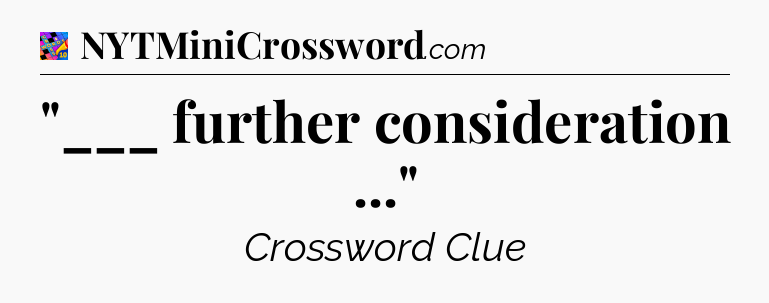 This page will help you find the correct answer to the ‘”___ further consideration …”‘ clue from Crosswords With Friends. If you’re stuck, simply scroll down to see the solution. We also provide extra answers, helpful hints, and tips to make solving Crosswords With Friends easier and more enjoyable. Use this resource anytime you need quick assistance with tough clues!