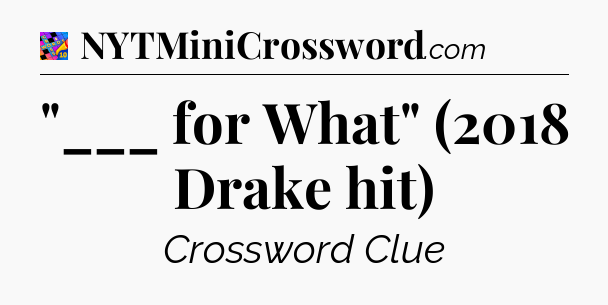 This page will help you find the correct answer to the ‘”___ for What” (2018 Drake hit)’ clue from Crosswords With Friends. If you’re stuck, simply scroll down to see the solution. We also provide extra answers, helpful hints, and tips to make solving Crosswords With Friends easier and more enjoyable. Use this resource anytime you need quick assistance with tough clues!