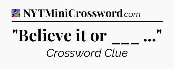 This page will help you find the correct answer to the ‘”Believe it or ___ …”‘ clue from Crosswords With Friends. If you’re stuck, simply scroll down to see the solution. We also provide extra answers, helpful hints, and tips to make solving Crosswords With Friends easier and more enjoyable. Use this resource anytime you need quick assistance with tough clues!