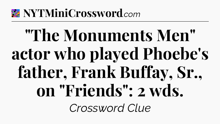 The clue “”The Monuments Men” actor who played Phoebe’s father, Frank Buffay, Sr., on “Friends”: 2 wds” most recently appeared in a Crosswords With Friends on July 24, 2024.