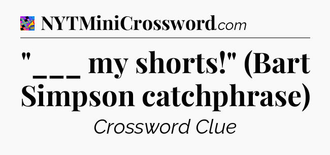 This page will help you find the correct answer to the ‘”___ my shorts!” (Bart Simpson catchphrase)’ clue from Crosswords With Friends. If you’re stuck, simply scroll down to see the solution. We also provide extra answers, helpful hints, and tips to make solving Crosswords With Friends easier and more enjoyable. Use this resource anytime you need quick assistance with tough clues!
