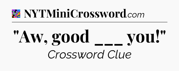 This page will help you find the correct answer to the ‘”Aw, good ___ you!”‘ clue from Crosswords With Friends. If you’re stuck, simply scroll down to see the solution. We also provide extra answers, helpful hints, and tips to make solving Crosswords With Friends easier and more enjoyable. Use this resource anytime you need quick assistance with tough clues!
