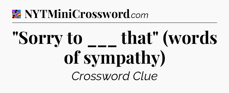 This page will help you find the correct answer to the ‘”Sorry to ___ that” (words of sympathy)’ clue from Crosswords With Friends. If you’re stuck, simply scroll down to see the solution. We also provide extra answers, helpful hints, and tips to make solving Crosswords With Friends easier and more enjoyable. Use this resource anytime you need quick assistance with tough clues!