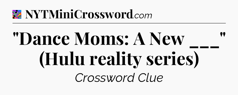 This page will help you find the correct answer to the ‘”Dance Moms: A New ___” (Hulu reality series)’ clue from Crosswords With Friends. If you’re stuck, simply scroll down to see the solution. We also provide extra answers, helpful hints, and tips to make solving Crosswords With Friends easier and more enjoyable. Use this resource anytime you need quick assistance with tough clues!
