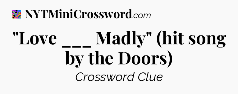 The clue “”Love ___ Madly” (hit song by the Doors)” most recently appeared in a Crosswords With Friends on August 11, 2024.