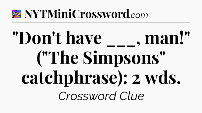There is 1 possible answer for the crossword clue “”Don’t have ___, man!” (“The Simpsons” catchphrase): 2 wds”.