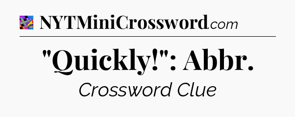 This page will help you find the correct answer to the ‘”Quickly!”: Abbr’ clue from Crosswords With Friends. If you’re stuck, simply scroll down to see the solution. We also provide extra answers, helpful hints, and tips to make solving Crosswords With Friends easier and more enjoyable. Use this resource anytime you need quick assistance with tough clues!