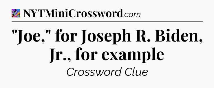 The Answer for “Joe,” for Joseph R. Biden, Jr., for example Crossword is: