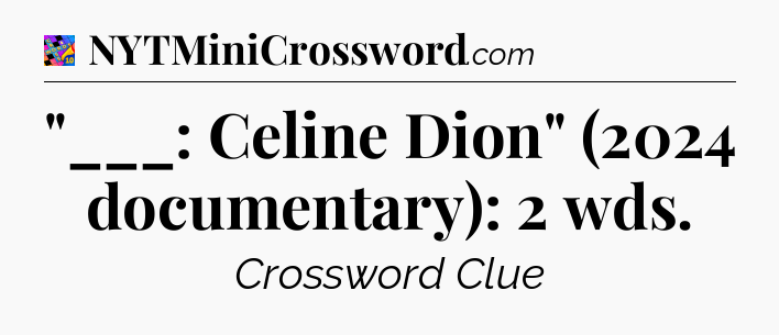 The clue “”___: Celine Dion” (2024 documentary): 2 wds” most recently appeared in a Crosswords With Friends on August 24, 2024.