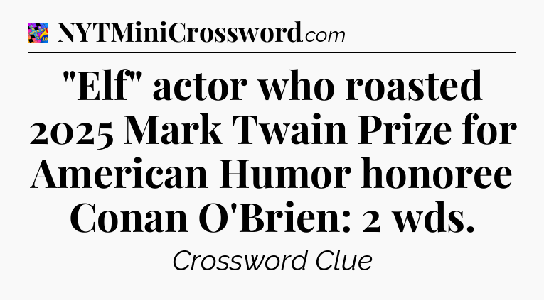 The clue “”Elf” actor who roasted 2025 Mark Twain Prize for American Humor honoree Conan O’Brien: 2 wds” most recently appeared in a Crosswords With Friends on August 24, 2025.