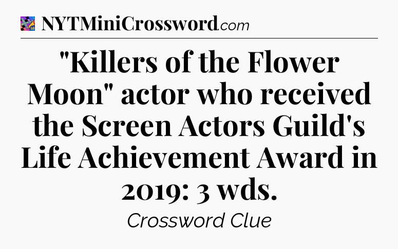 The Answer for “Killers of the Flower Moon” actor who received the Screen Actors Guild’s Life Achievement Award in 2019: 3 wds Crossword is: