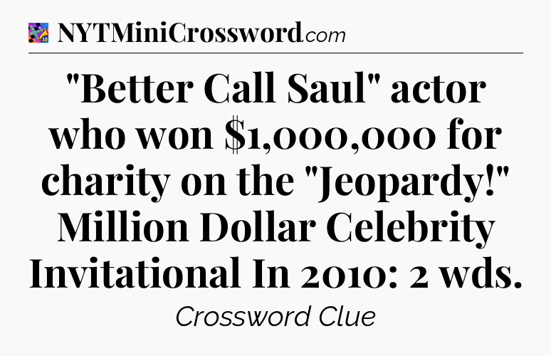 There is 1 possible answer for the crossword clue “”Better Call Saul” actor who won $1,000,000 for charity on the “Jeopardy!” Million Dollar Celebrity Invitational In 2010: 2 wds”.