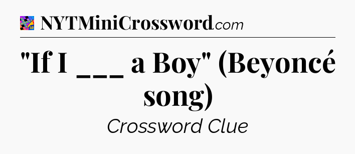The Answer for “If I ___ a Boy” (Beyoncé song) Crossword is: