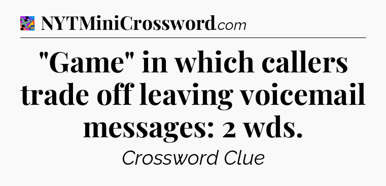 The clue “”Game” in which callers trade off leaving voicemail messages: 2 wds” most recently appeared in a Crosswords With Friends on August 3, 2024.