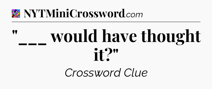 This page will help you find the correct answer to the ‘”___ would have thought it?”‘ clue from Crosswords With Friends. If you’re stuck, simply scroll down to see the solution. We also provide extra answers, helpful hints, and tips to make solving Crosswords With Friends easier and more enjoyable. Use this resource anytime you need quick assistance with tough clues!