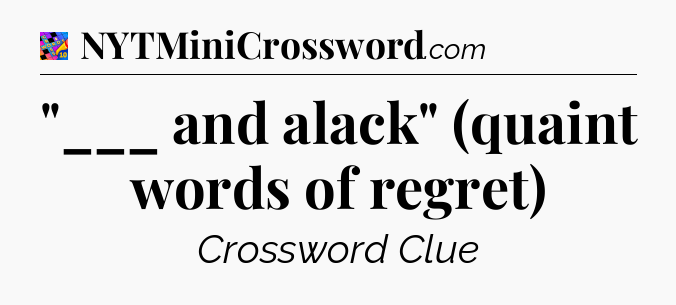 This page will help you find the correct answer to the ‘”___ and alack” (quaint words of regret)’ clue from Crosswords With Friends. If you’re stuck, simply scroll down to see the solution. We also provide extra answers, helpful hints, and tips to make solving Crosswords With Friends easier and more enjoyable. Use this resource anytime you need quick assistance with tough clues!