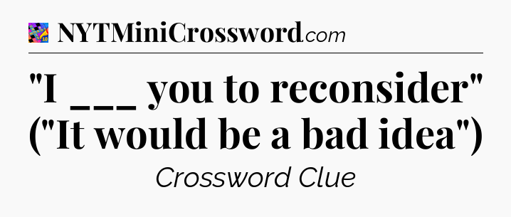 This page will help you find the correct answer to the ‘”I ___ you to reconsider” (“It would be a bad idea”)’ clue from Crosswords With Friends. If you’re stuck, simply scroll down to see the solution. We also provide extra answers, helpful hints, and tips to make solving Crosswords With Friends easier and more enjoyable. Use this resource anytime you need quick assistance with tough clues!