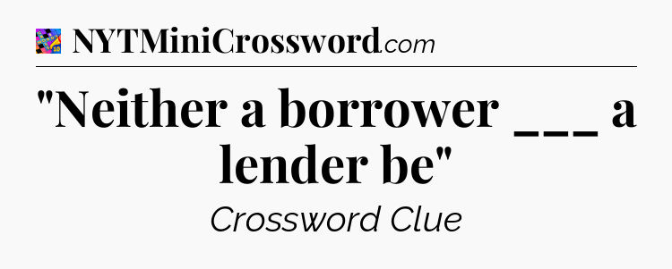There is 1 possible answer for the crossword clue “”Neither a borrower ___ a lender be””.